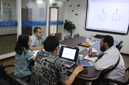 The two customers from Yemen ordered a number of stainless steel tanks in 2013, and they highly approve our product’s quality and sincere service. At present, their company business has expanded a lot, so they need to order a full set of tomato paste production line equipment. In May 29, 2014, the two customers from Yemen once again came to our company to negotiate with sales staff and engineers on specific details.