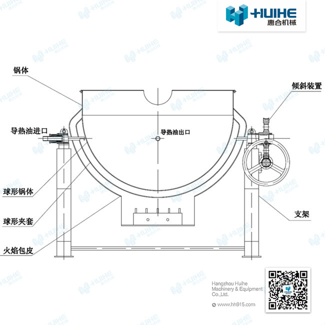 1.可傾式電加熱夾層鍋的用途是由內(nèi)外球形鍋體組成的雙層結(jié)構(gòu)形式,內(nèi)外球形鍋體中間夾層通入蒸汽加熱。