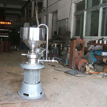 (五)打漿、細磨切下的玉米籽及刮取的漿液經(jīng)加入5倍重的水用打漿機打漿,篩孔直徑為0.5毫米,除去玉米軸碎片及其他雜物。然后再用膠體磨進行細磨轉入攪拌缸中待用。