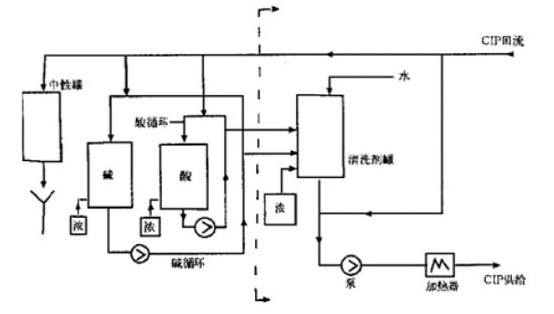 清洗劑重復(fù)使用的CIP清洗系統(tǒng)示意圖(2)