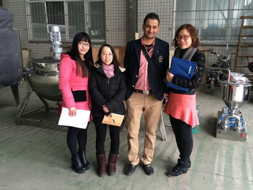 2015年2月3日,坦桑尼亞客戶需要采購一套牛奶生產(chǎn)線設備,來我公司與業(yè)務員和技術工程師進行具體需求的洽談,并參觀工廠進一步了解牛奶生產(chǎn)線的組成設備。下圖為業(yè)務員與客戶合影留念: