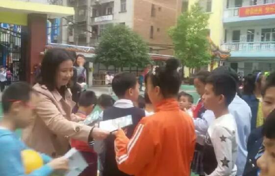 項目負(fù)責(zé)人解冰為學(xué)生發(fā)放兒童食品安全手冊