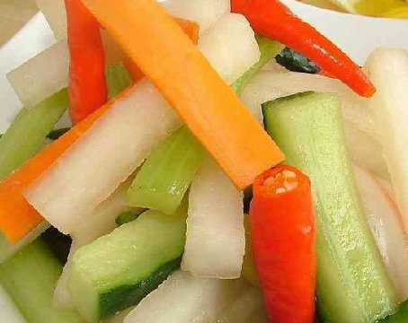 食材:白蘿卜1000g、黃瓜1000g、李子250g、鹽適量、冰糖適量、純凈水適量