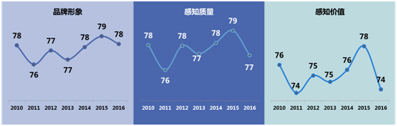 一、2016年液態(tài)奶行業(yè)滿意度得分76分(滿分100分),比2015年降低1分。品牌形象、感知質(zhì)量和感知價值指數(shù)相比去年出現(xiàn)了不同程度的下降。從歷史數(shù)據(jù)上看,液態(tài)奶行業(yè)滿意度指數(shù)自2010年開始基本呈現(xiàn)調(diào)整上升的趨勢,與此同時,人均液態(tài)奶消費(fèi)量和乳制品企業(yè)利潤總額均水漲船高。值得注意的是,2016年液態(tài)奶行業(yè)滿意度出現(xiàn)小幅下降,人均液態(tài)奶消費(fèi)量的增速也在放緩,液態(tài)奶企業(yè)應(yīng)重視影響消費(fèi)者滿意度的因素并掌握未來液態(tài)奶的消費(fèi)需求動向,以此作為未來營銷方向的重點。